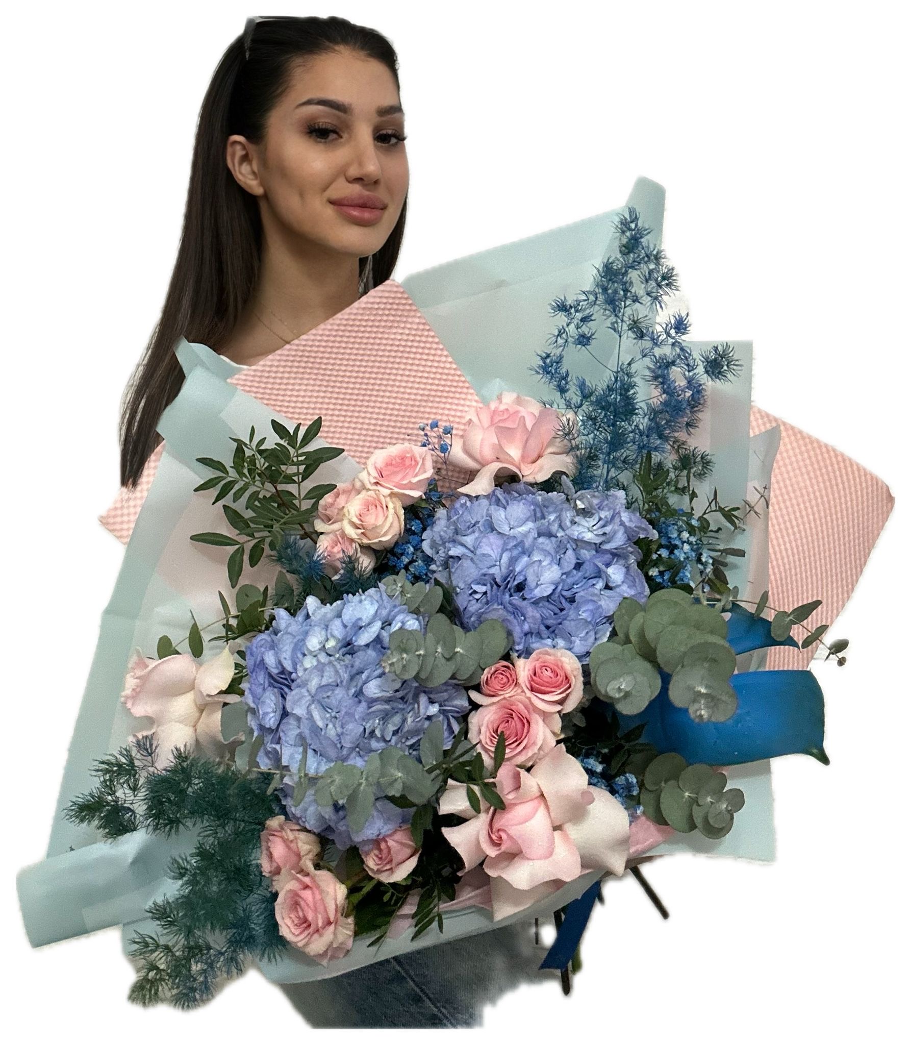 Partea albastră inspiră calm, echilibru și încredere, în timp ce partea roz exprimă gingășie, afecțiune și bucurie. Împreună, creează un buchet modern, ideal pentru aniversări, zile de naștere, botezuri sau pentru a transmite un mesaj special unei persoane dragi.